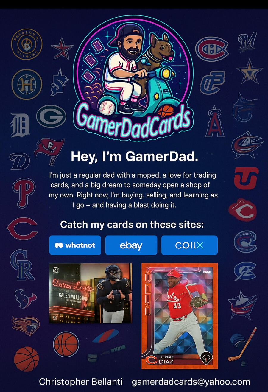 Real Deals. Real Dad EnergyHey, I’m Chris — a dad, collector, and new to this whole card-selling thing… but I love it.